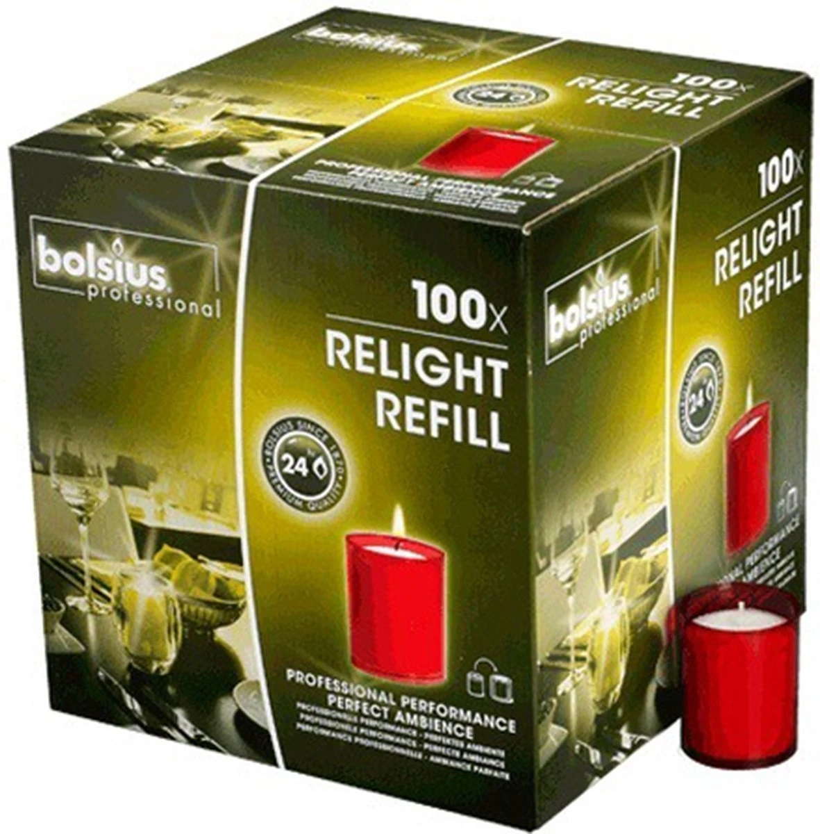 100 Stuks Bolsius ReLight Kaars In Rode Houder 64/50 (24 Uur)