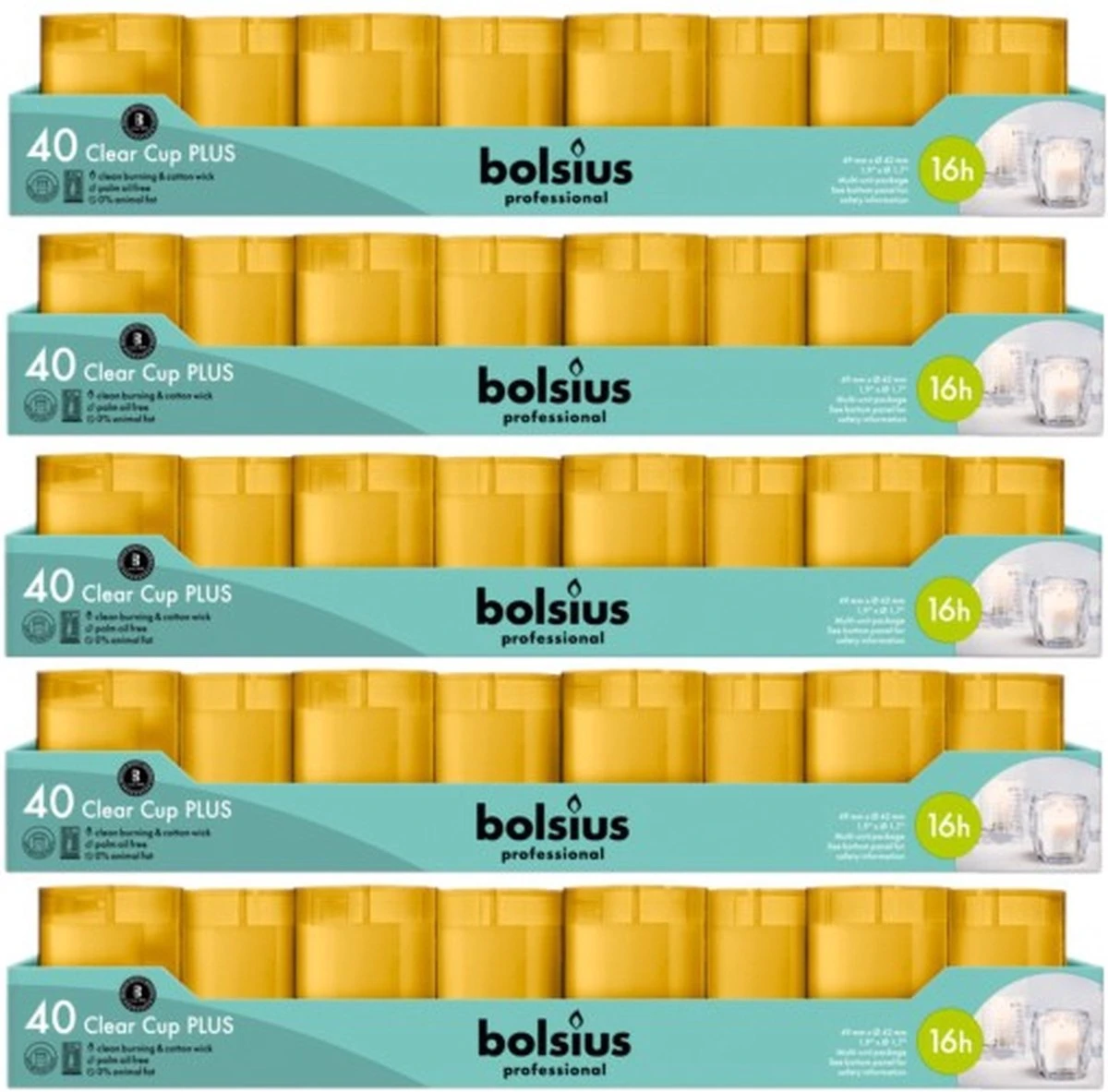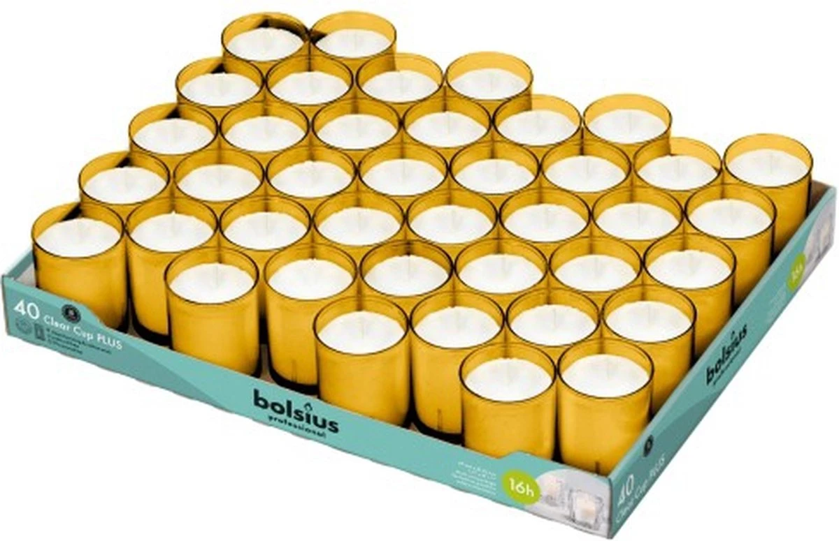 200 Stuks Bolsius Clear Cups Kaars In Amber Houder 49/42 (16 Uur)
