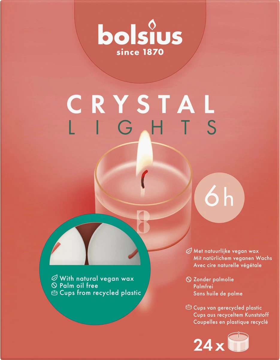Als je waxinelichtjes brandt, wil je lekker lang genieten van kaarslicht zonder steeds lege cups te vervangen voor een nieuw theelichtje. De Bolsius clear cup waxinelichtjes bevatten een blend van hoogwaardige paraffine en plantaardige stearine, en hebben daardoor een extra lange brandduur: tot wel 6 uur. Zet het lontje goed rechtop als je hem aansteekt, dan blijft de vlam stabiel en brandt je waxinelichtje langdurig.