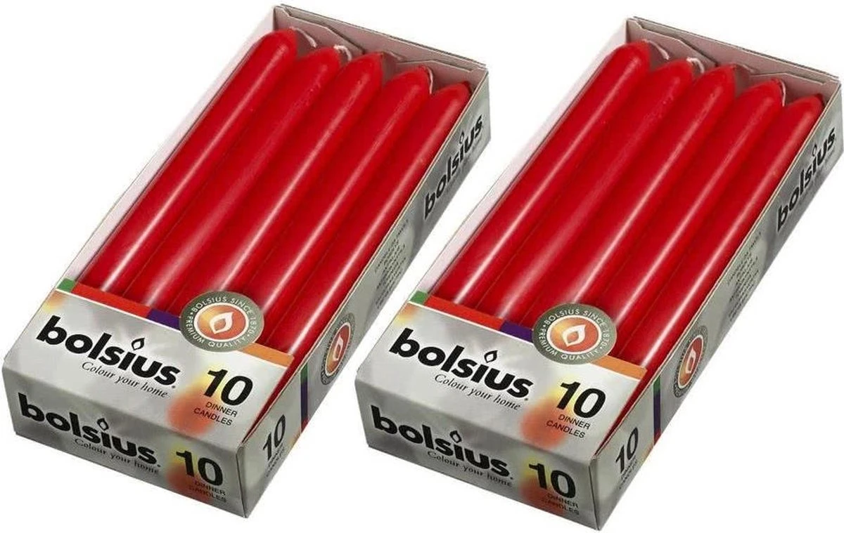 Bolsius Dinerkaarsen – 230/20 kleur rood – 20 kaarsen in 2 verpakkingen.