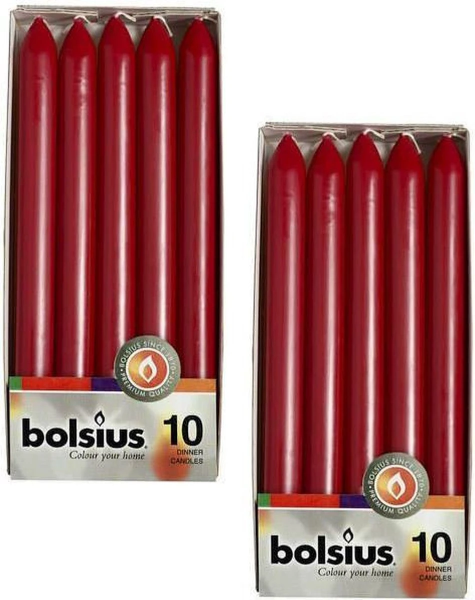 Bolsius Dinerkaarsen – 230/20 kleur wijnrood / bordeaux – 20 kaarsen in 2 verpakkingen