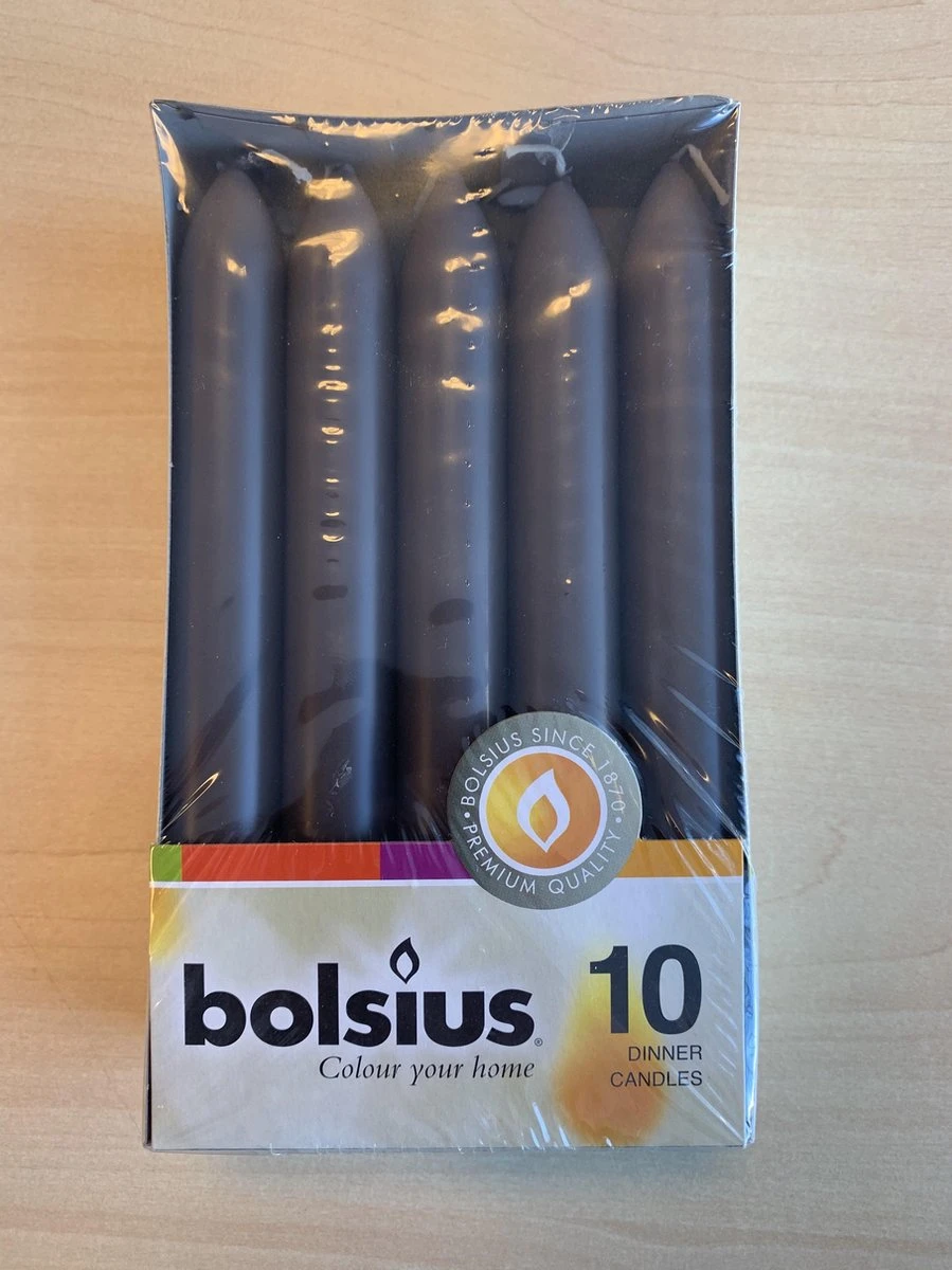 Bolsius Dinerkaarsen in de kleur Grijs. Aantal branduren: 6.
