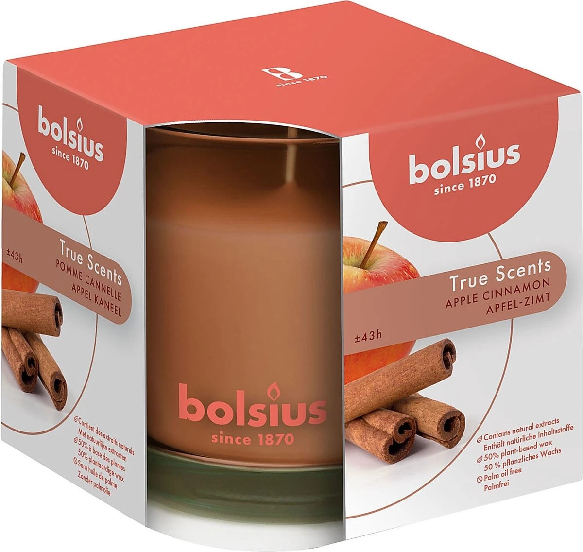 Verspreid een heerlijke geur van appeltaart door de kamer met deze geurkaars van Bolsius. Met de heerlijk herkenbare feelgoodgeur van verse appel en kruidige kaneel. Gemaakt met natuurlijke extracten, natuurlijke vegan wax en zonder palmolie. Ervaar de pure geurbeleving van aromatische kaneel en frisse appel bij jou thuis. Gebruik deze kaars bijvoorbeeld voor een warm gevoel van zoete vreugde.