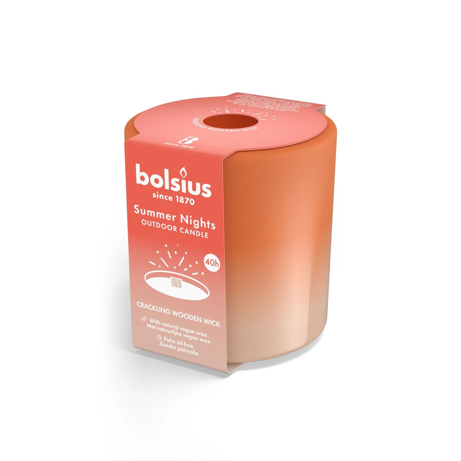Geniet van een zwoele zomeravond met de Bolsius Summer Nights kaars! Deze ivoor-kleurige kaars in een potje is speciaal voor gebruik buiten. Door de houten lont geeft de kaars een gezellig, knetterend geluid. Hierdoor zal de kaars je doen denken aan een gezellig knapperend vuurtje! De kaars biedt ca. 60 branduren.